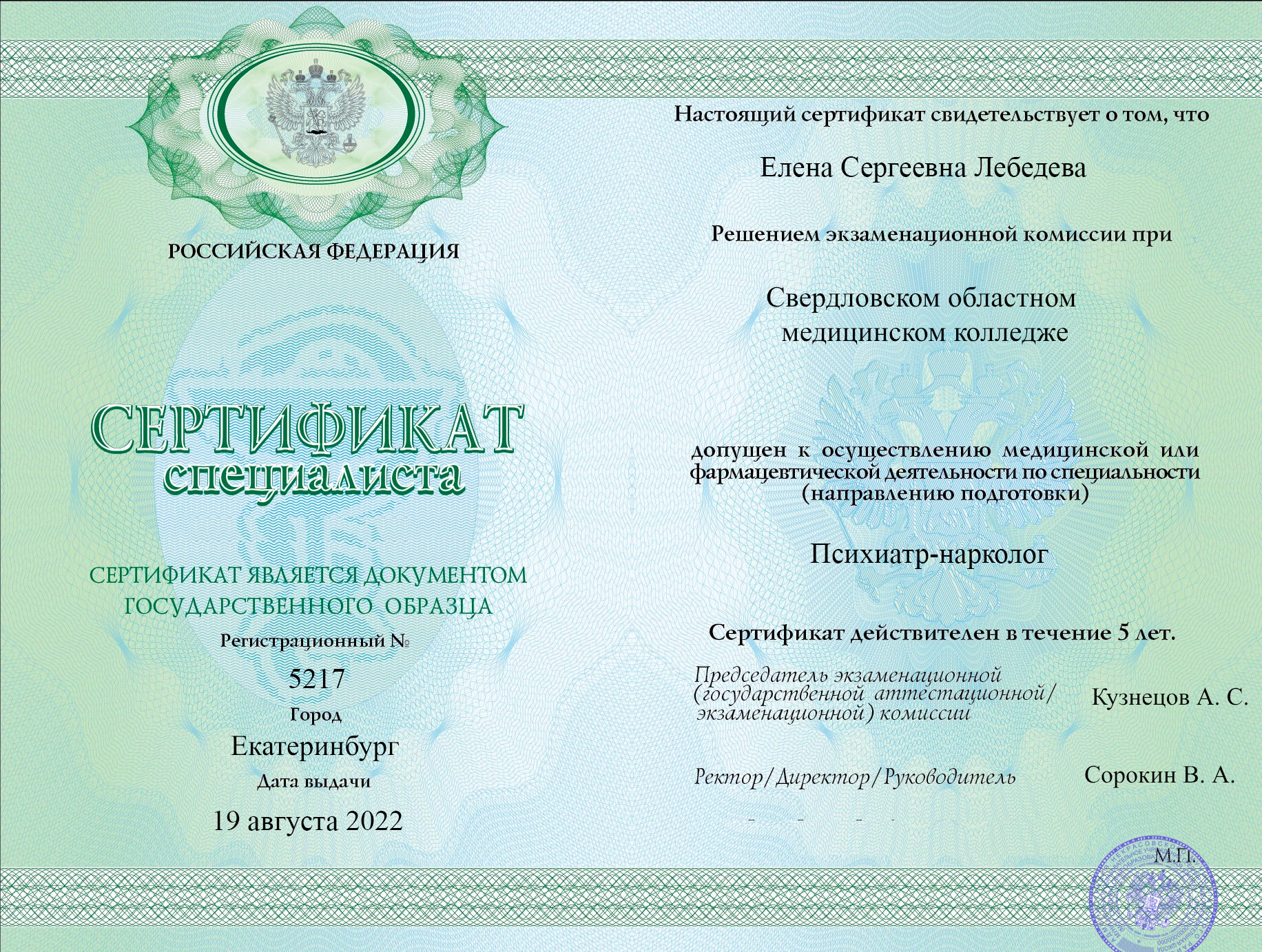 Елена Сергеевна Лебедева врач нарколог клиники доктора Стукаловой в Анадыре